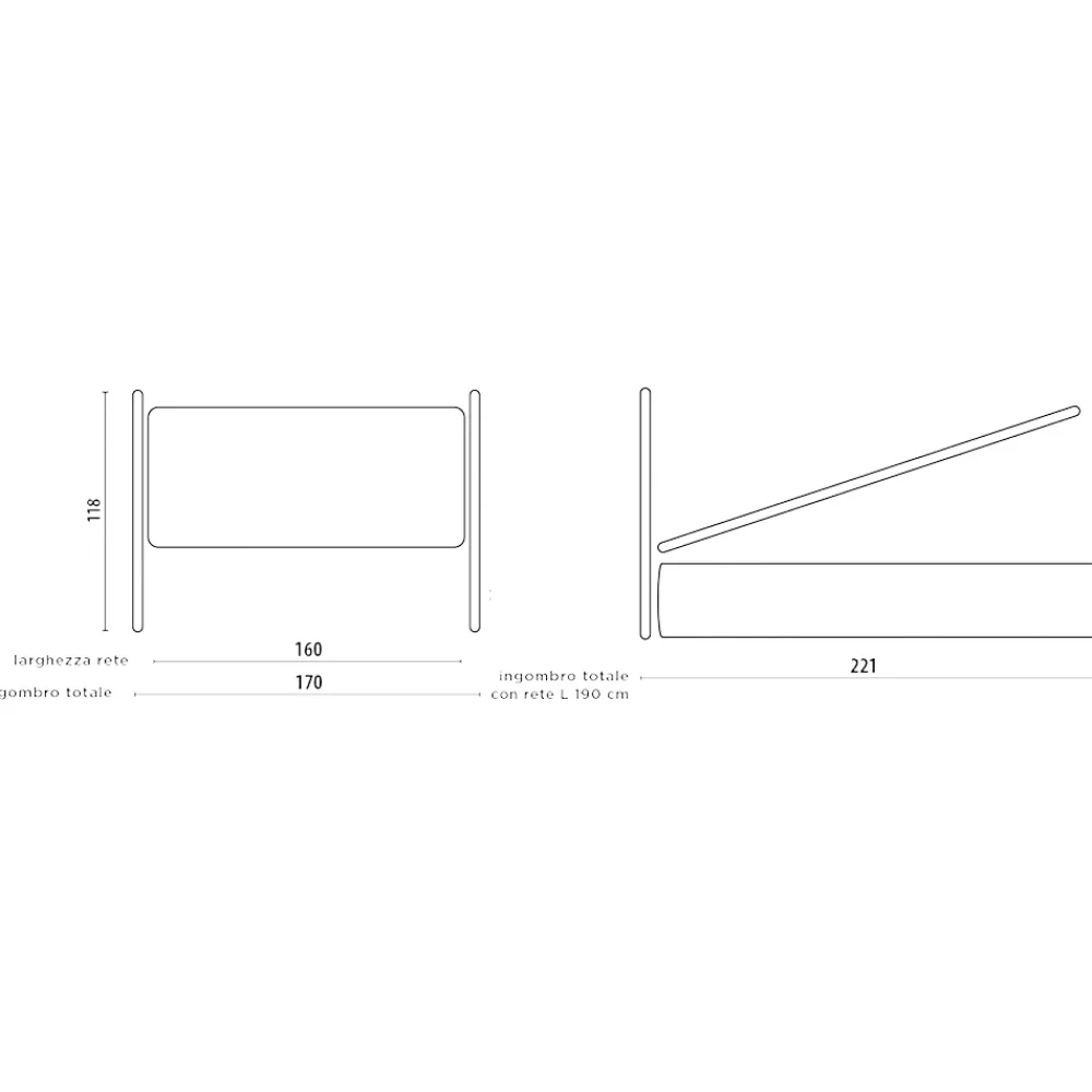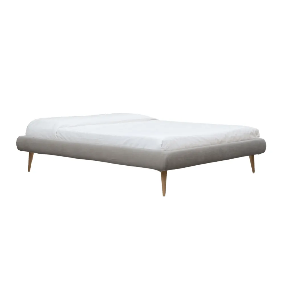 Modell mit Füßen H 25 cm: gepolsterter Bettrahmen mit unterstützter Basis und bequemem Holzfuß 25 cm hoch, der die Reinigung unter der Struktur ermöglicht.
