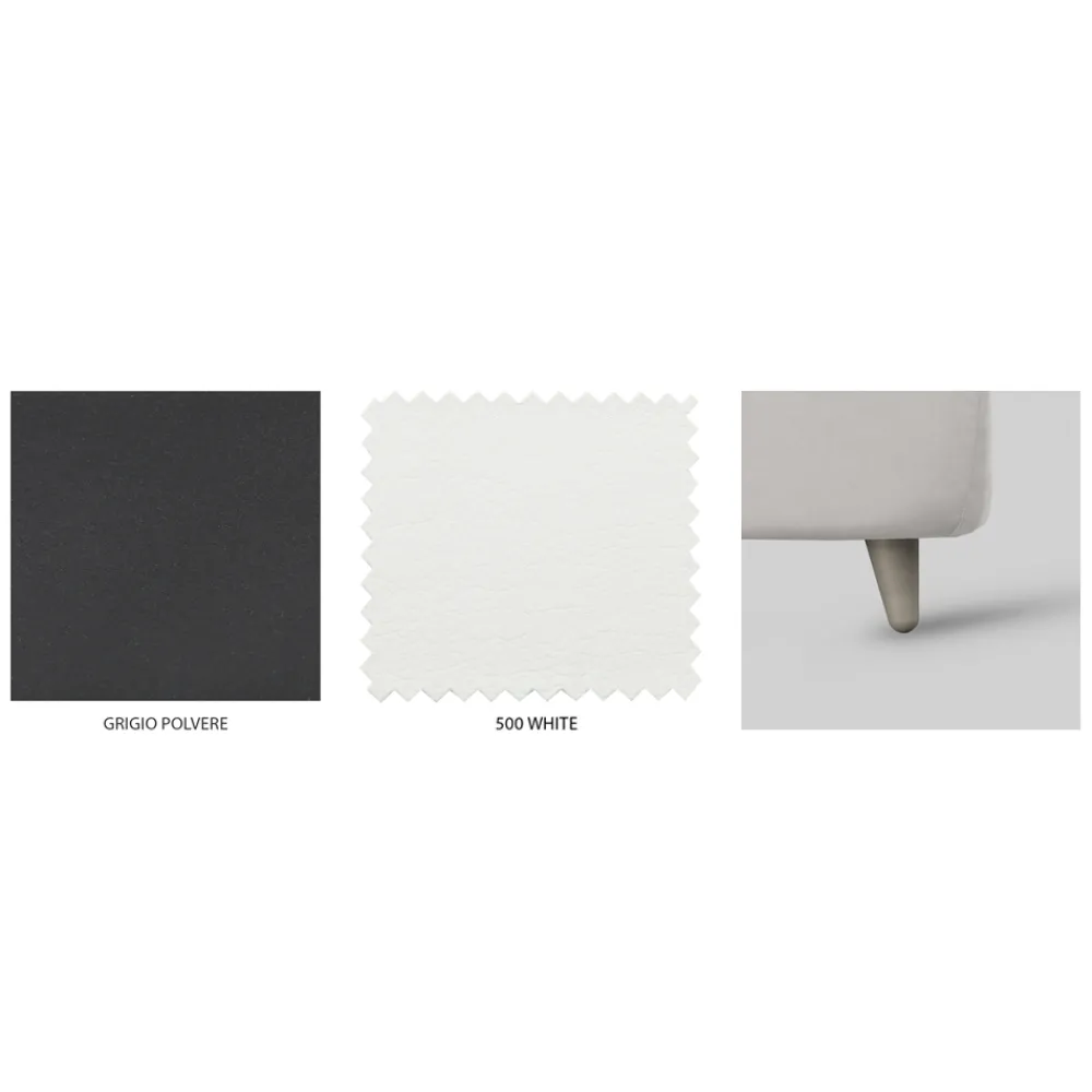 - Modell H 11 Fuß: pudergraues Kopfteil, weißer Bettrahmen aus Ökoleder und taubengraue Füße aus Polypropylen