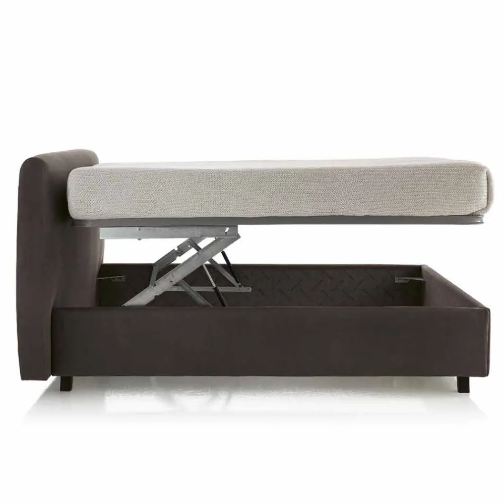 – Komodo-Öffnungsmechanismus: Mit einer einfachen Geste wird der Lattenrost auf die ideale Größe positioniert, damit Sie das Bett machen können, ohne sich absenken zu müssen, und einen großzügigen Zugang zum gesamten Container bieten. Komodo ist ein patentierter Mechanismus made in Italy.