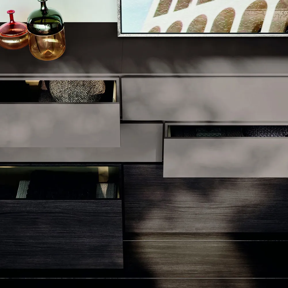 Es ist eine Einrichtungsidee, die auf der Grundlage handwerklicher Werte geschaffen wurde, um die für das Made in Italy typische Exzellenz und hohe Qualität zu erreichen, bei der innovative Ideen und Kultur zugunsten der Optimierung der Prozesse und der Liebe zum Detail miteinander verwoben werden. So entstehen funktionale und raffinierte Möbel für den Schlafbereich.