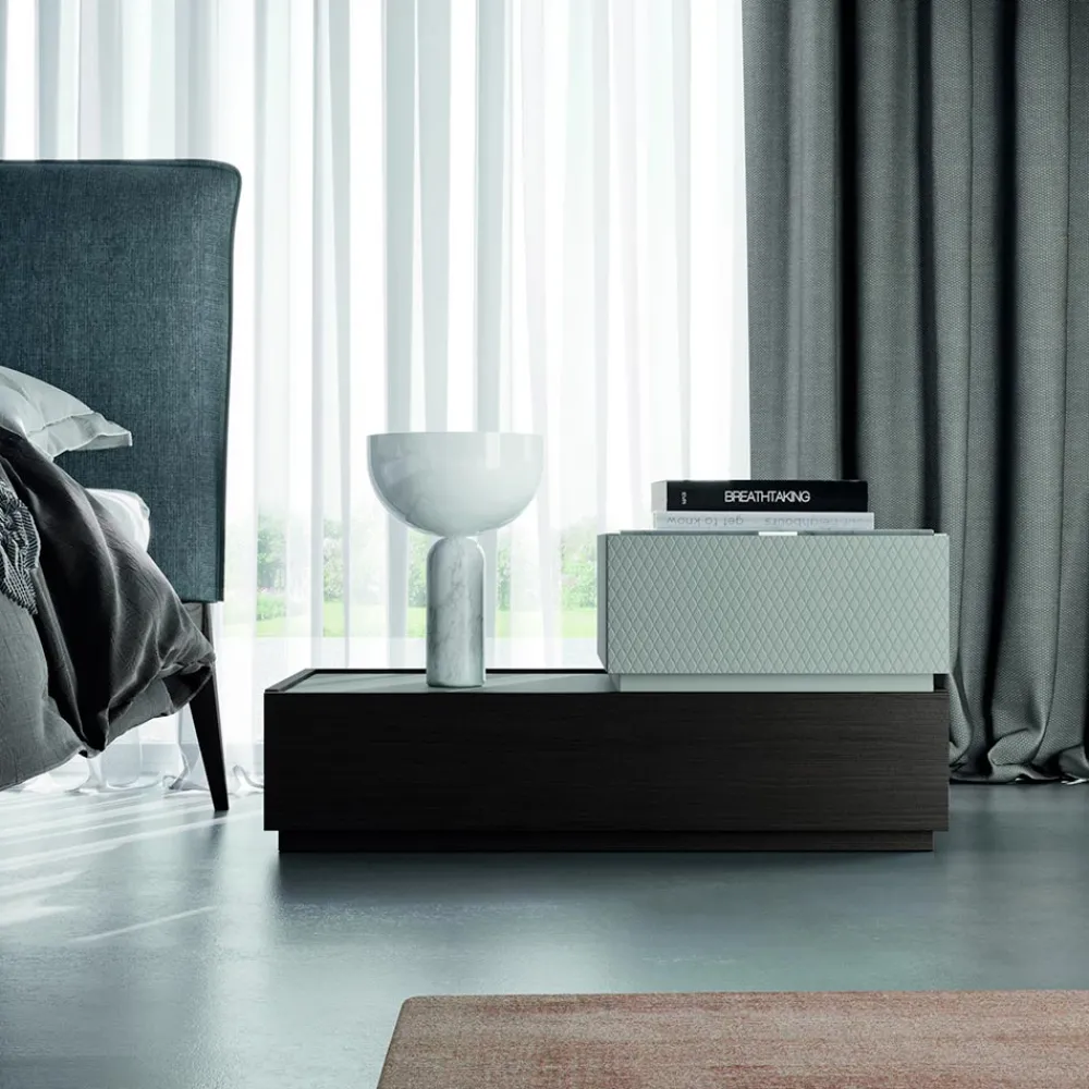 Es ist eine Einrichtungsidee, die auf der Grundlage handwerklicher Werte geschaffen wurde, um die für das Made in Italy typische Exzellenz und hohe Qualität zu erreichen, bei der innovative Ideen und Kultur zugunsten der Optimierung der Prozesse und der Liebe zum Detail miteinander verwoben werden. So entstehen funktionale und raffinierte Möbel für den Schlafbereich.