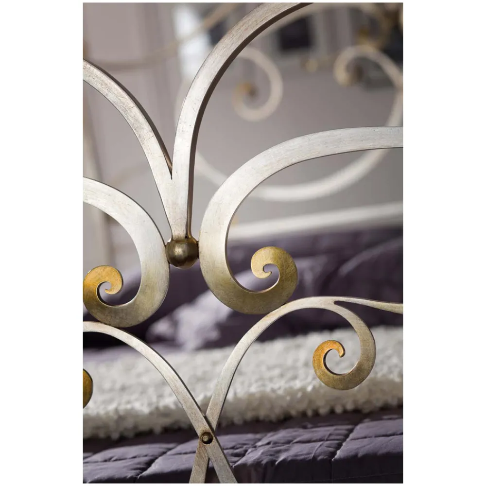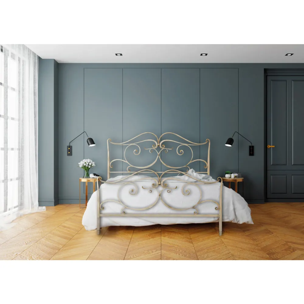 Doppelbett mit passendem Kopf- und Fußteil aus massivem Eisen , mit Pulverbeschichtung oder handgemachter Blättermalerei versehen.