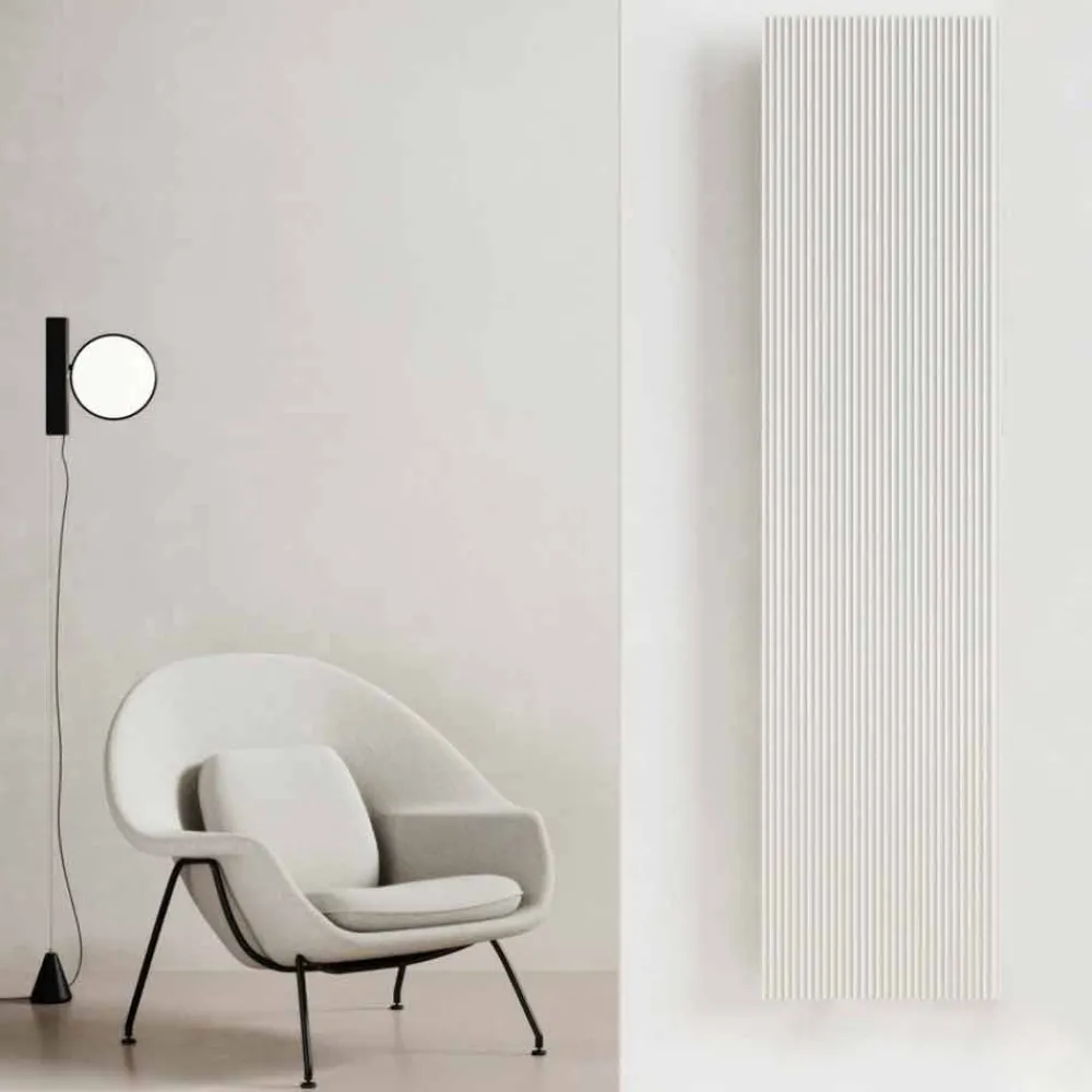 Dieser elektrische Heizkörper verfügt über ein modernes Design, bei dem der eigentliche Protagonist die Architektur ist, die sich durch Linien mit wechselndem Rhythmus auszeichnet, die Lichtspiele und Dialoge mit dem umgebenden Raum erzeugen.