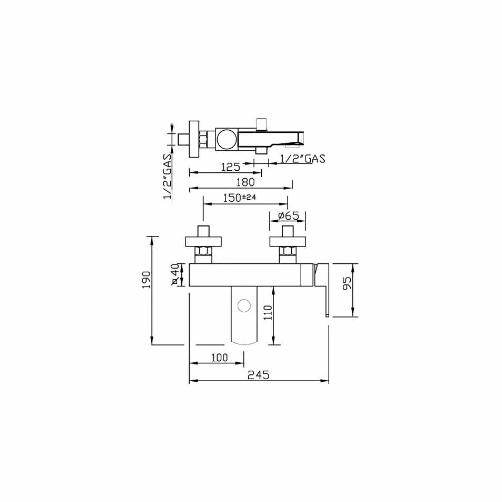 Externer Wannenmischer aus Messing. Hergestellt in Italien.