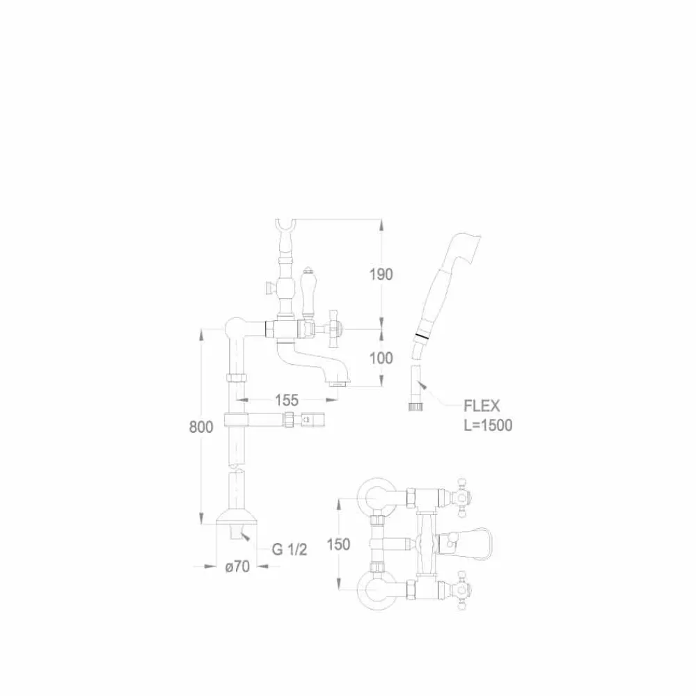 Externe Badarmatur an Bodensäulen mit Umstellung und Duplexdusche Made in Italy.