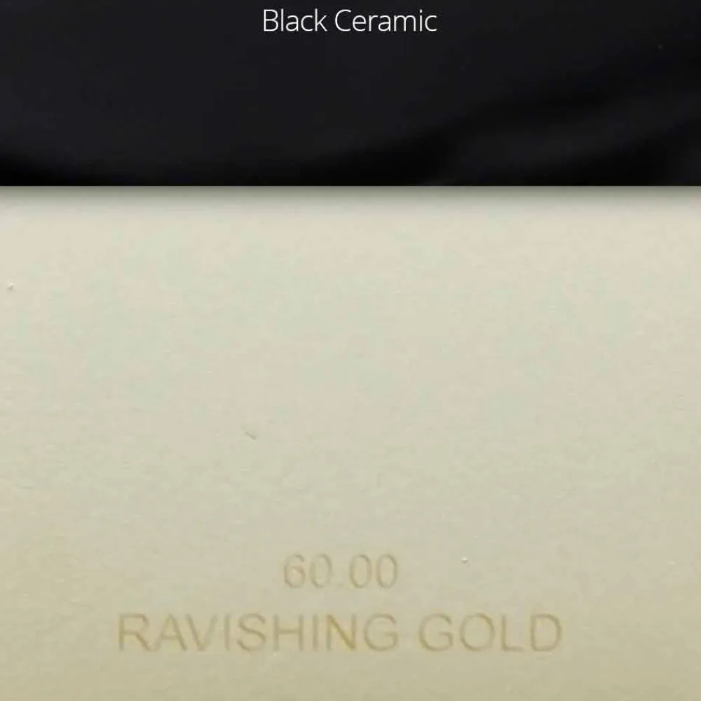 - Matt Majestic Gold: Mattes 13-Gold-Finish mit schwarzen Keramikeinsätzen an den Griffen;