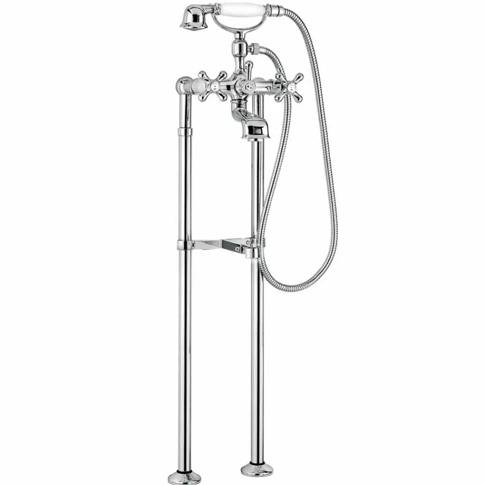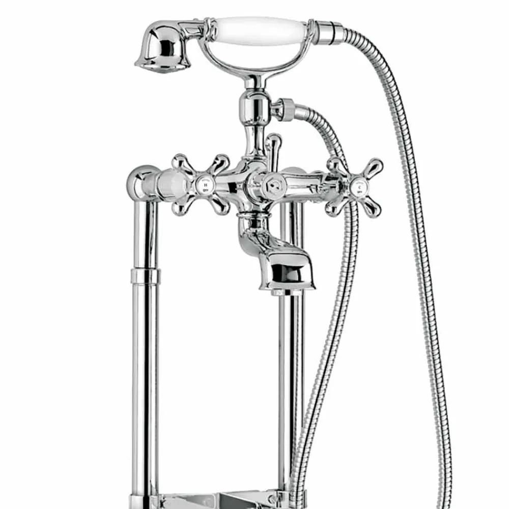 Freiliegender Bademischer auf Bodensäulen mit Umstellung und Duplex-Handbrause Made in Italy.