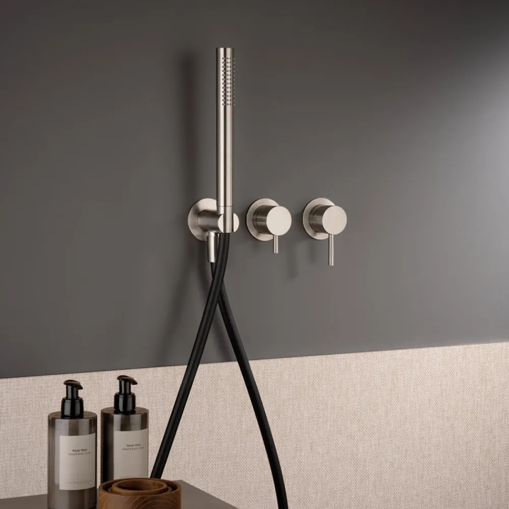 Unterputz-Brausemischer mit 3-Wege-Umstellhebel und Brausenset aus Edelstahl AISI 316L , 100 % recycelbares Material, vollständig in Italien hergestellt.