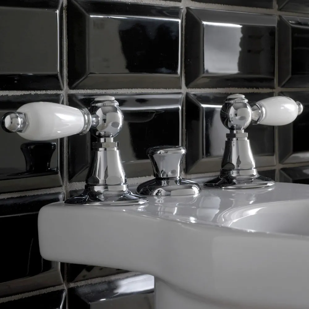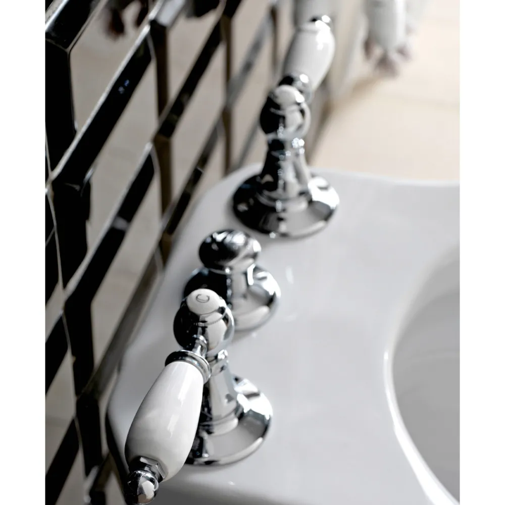 Die Armaturen dieser Kollektion zeichnen sich durch die besonderen Hebelgriffe aus, die in Kombination mit dem Metall der Struktur zu den absoluten Protagonisten werden, für ein klassisches und zeitloses Design mit Vintage-Aroma.
