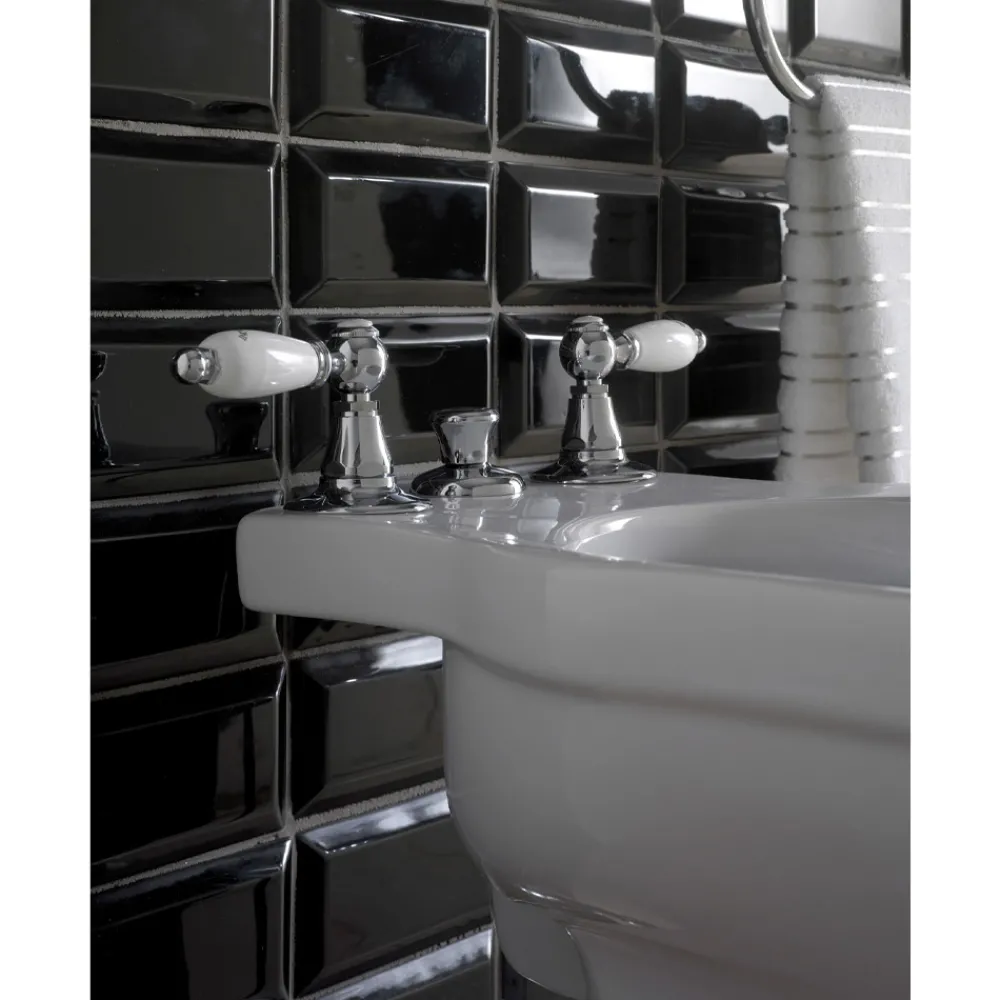 Diese raffinierte 3-Loch-Bidet-Armatur mit Spülung und internem Auslauf ist vollständig handgefertigt von erfahrenen Handwerkern in der Branche in schwerem Messing, gegossen in Formen, die die handwerklichen Systeme der Vergangenheit respektieren und geschützt mit einer dicken Lackschicht, die in verschiedenen Farben erhältlich ist.