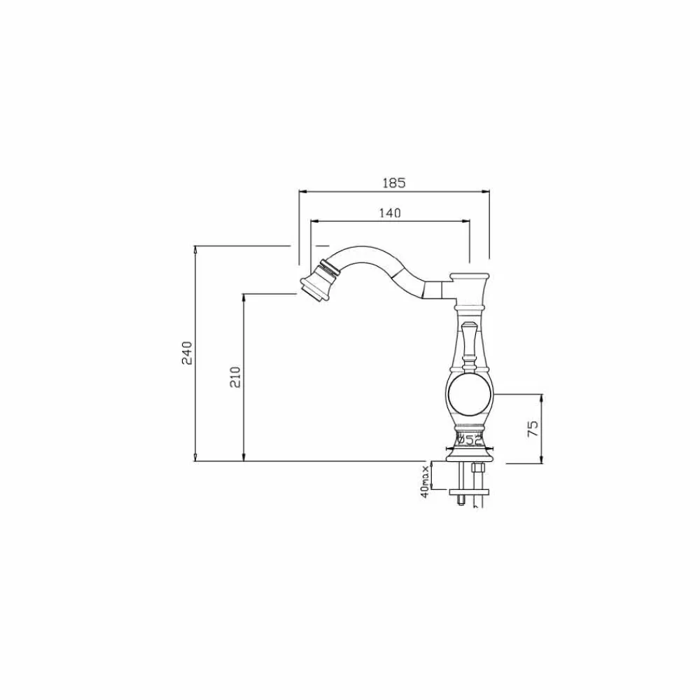 Bidetmischer mit hohem, schwenkbarem Auslauf, komplett mit flexiblem 1’1/4-Ablauf mit 3/8-Innenkappe und Befestigungssatz.