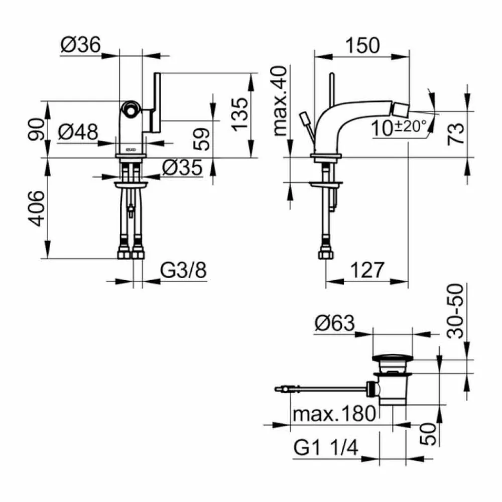- Druckrohre 435 mm, G 3/8 Zoll;