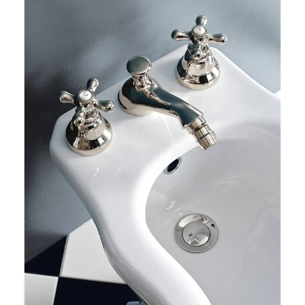 Bidet 3-Loch Wasserhahn mit Ablauf in Messing klassischen Stil, Luxus in Italien hergestellt.