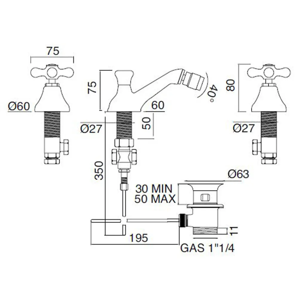 Diese raffinierte 3-Loch-Bidet-Armatur mit Ablauf è vollständig handgefertigt von erfahrenen Handwerkern auf dem Gebiet inschwerem Messing, gegossen in Formen, die die handwerklichen Systeme der Vergangenheit respektieren und mit einer dicken Schicht von Finish in verschiedenen Farben erhältlich geschützt.