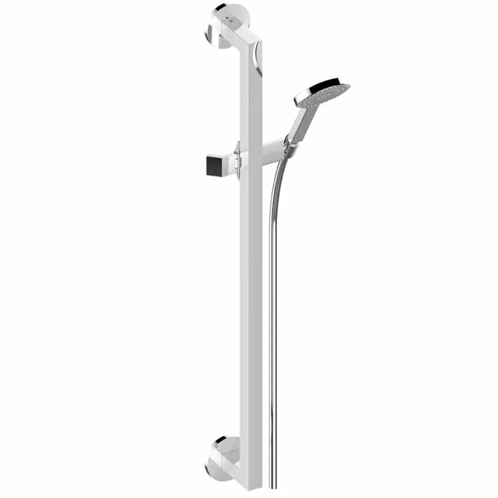Duschset mit Gleitschiene , Handbrause und flexiblem Schlauch aus verchromtem Messing .