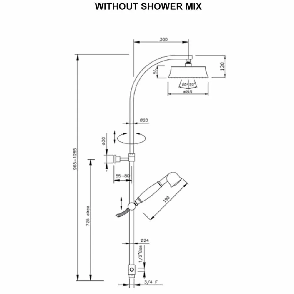 - runder Duschkopf: Ø 215 mm.