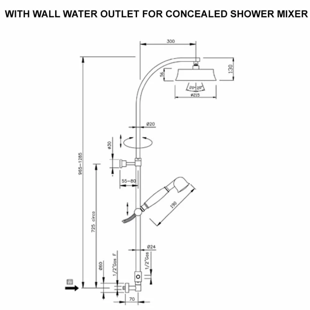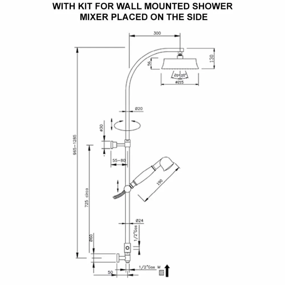 Duschsäule im klassischen Design aus Messing mit rundem Duschkopf. Made in Italy.