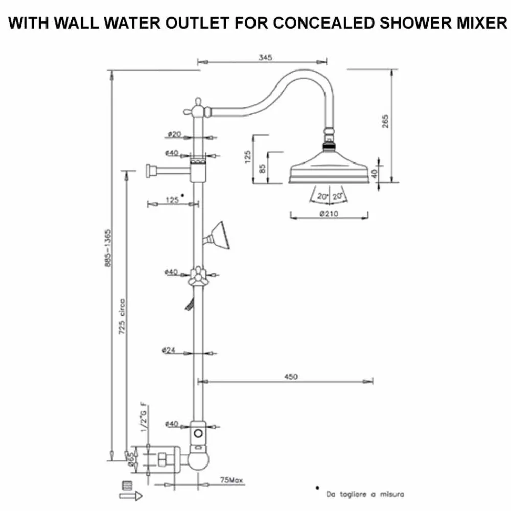 Duschsäule im klassischen Design aus Messing mit Duschkopf und Handbrause, edles Produkt „Made in Italy“.