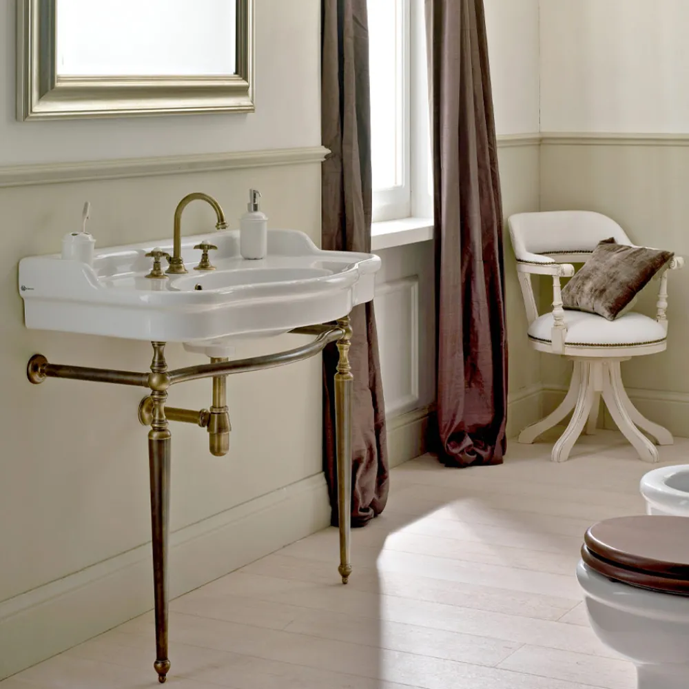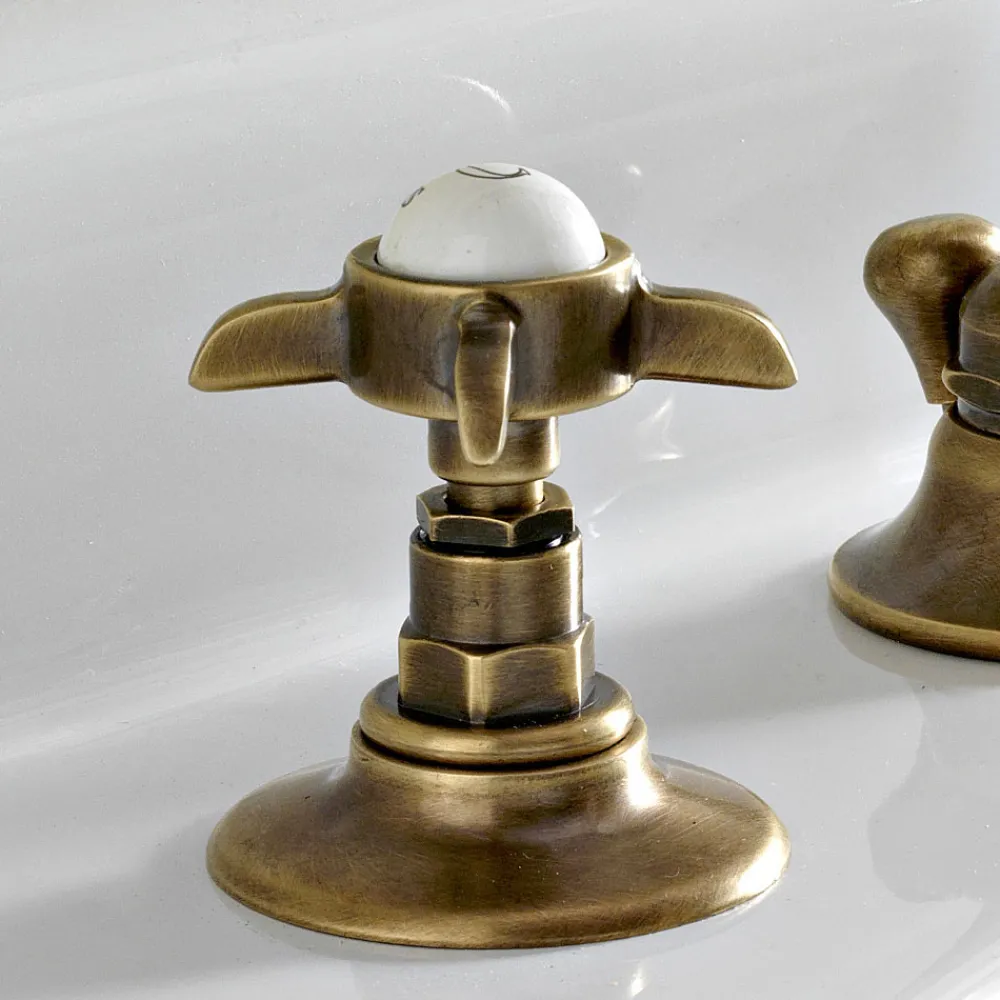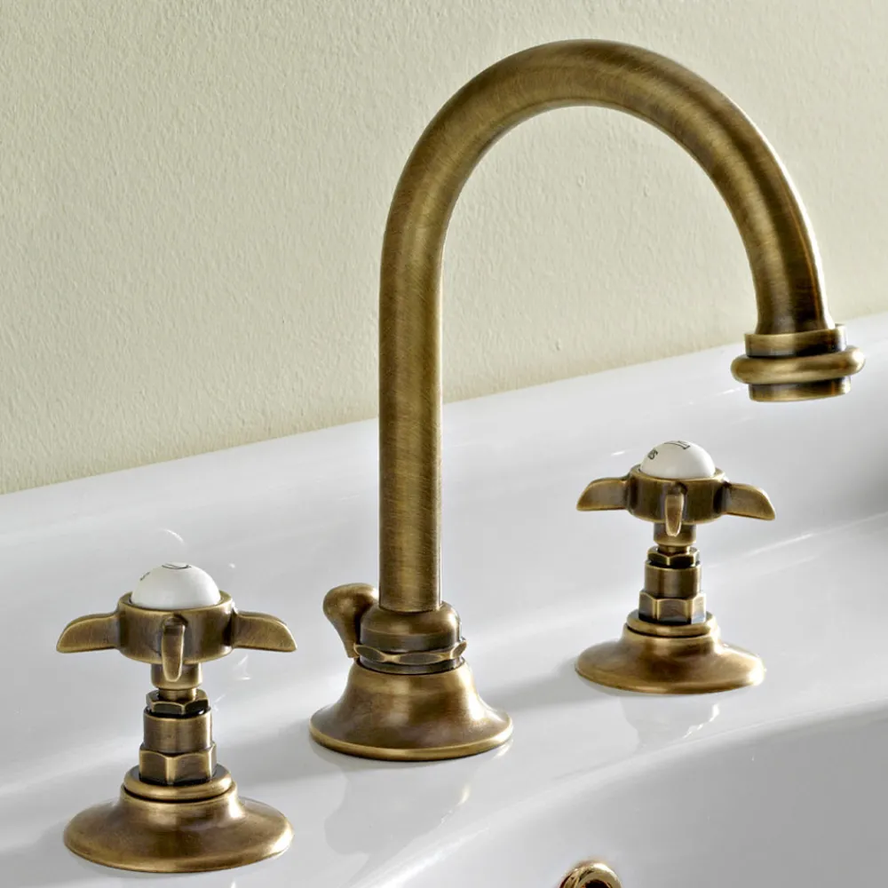 Hoher Auslauf 3-Loch-Waschtischarmatur aus Messing, handgefertigt, klassischer Stil, hergestellt in Italien