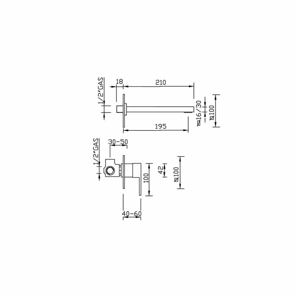 Wand -Spültischmischer, komplett mit Unterputz- und Außenteil. Ohne Auspuff.