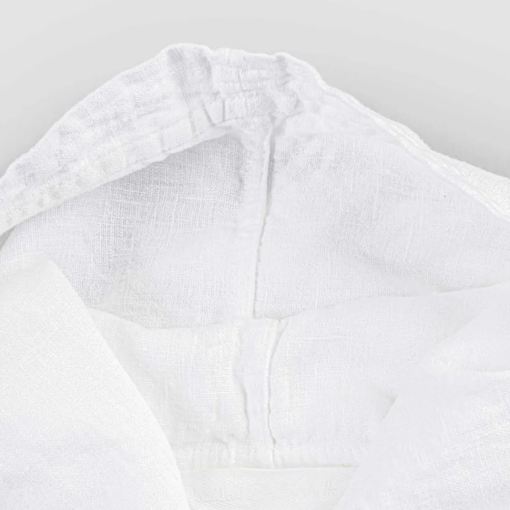 Weißer Leinenbademantel mit Kapuze, raffiniertes Luxusdesign made in Italy.