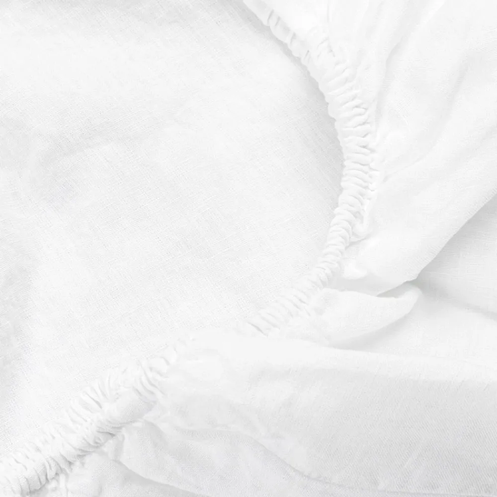 Spannbetttuch für Doppelbett aus reinweißem Leinen, luxuriöse Designhandwerkskunst made in Italy.
