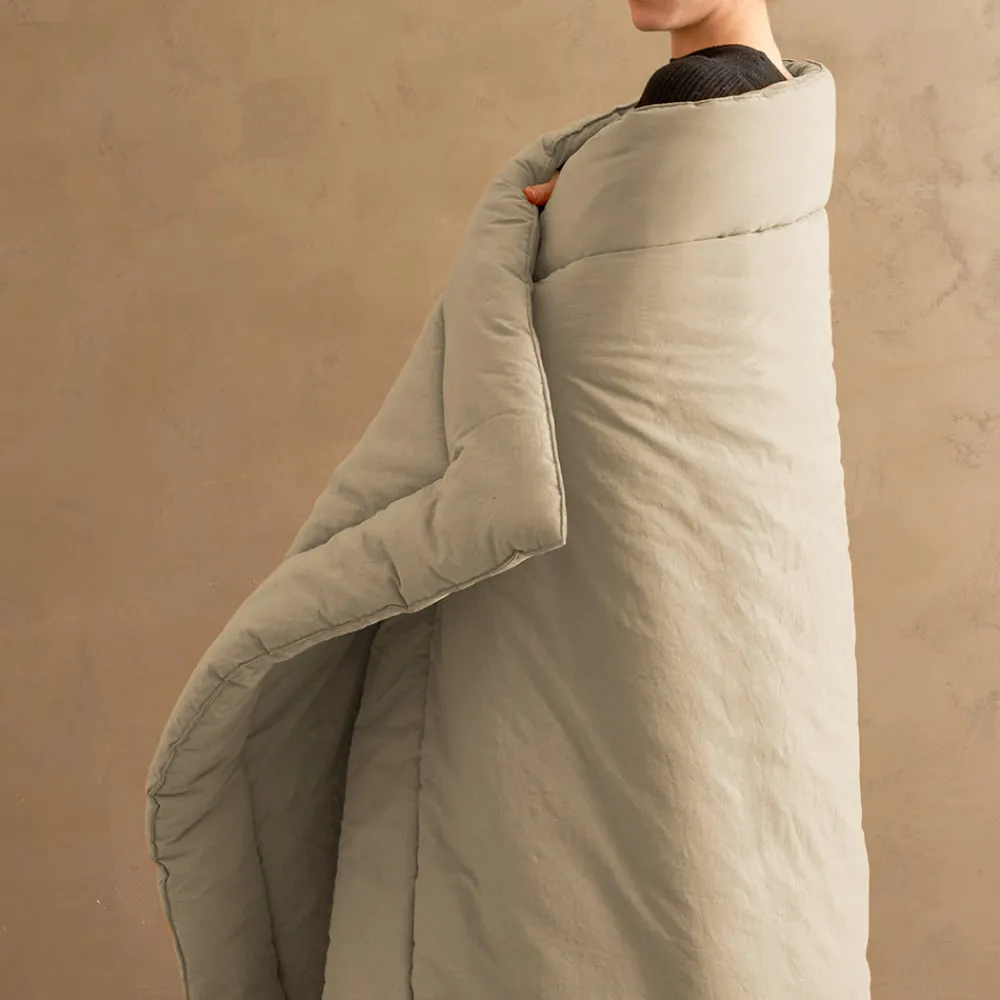 Wärmeres Doppelbett (350 g/m2) aus reiner, im Stück gefärbter Baumwolle. Innenpolsterung aus antiallergischer Kunstharzwatte. Der zerknitterte und abgenutzte Griff des Stoffes ist das Wesen der im Stück gefärbten Technik und die erzielten Farbtöne sind unwiederholbar : Das gleiche Farbbad kann tatsächlich leicht unterschiedliche Nuancen erzeugen, die Ihr Kleidungsstück einzigartig und exklusiv machen.