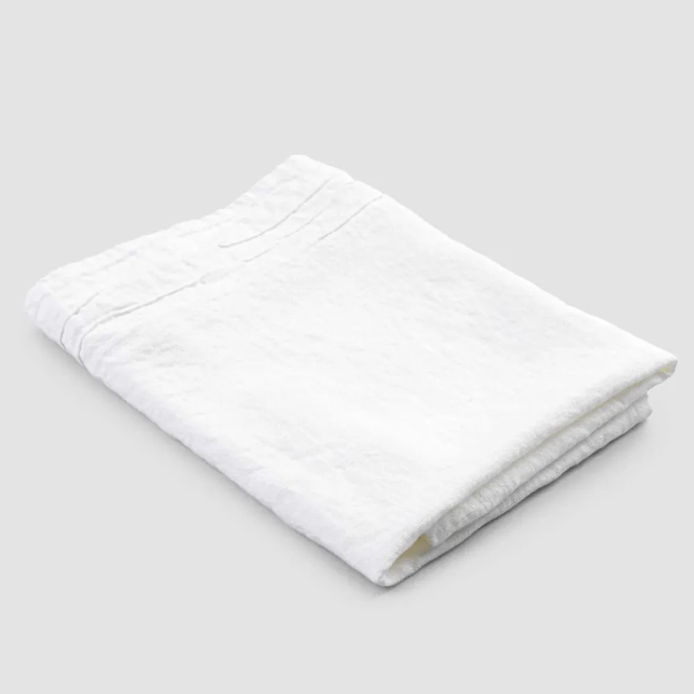 Der Wert der Tradition verbindet den modernen Lebensstil mit dem weißen Badetuch aus schwerem Leinen mit einem genähten Faltenrand.