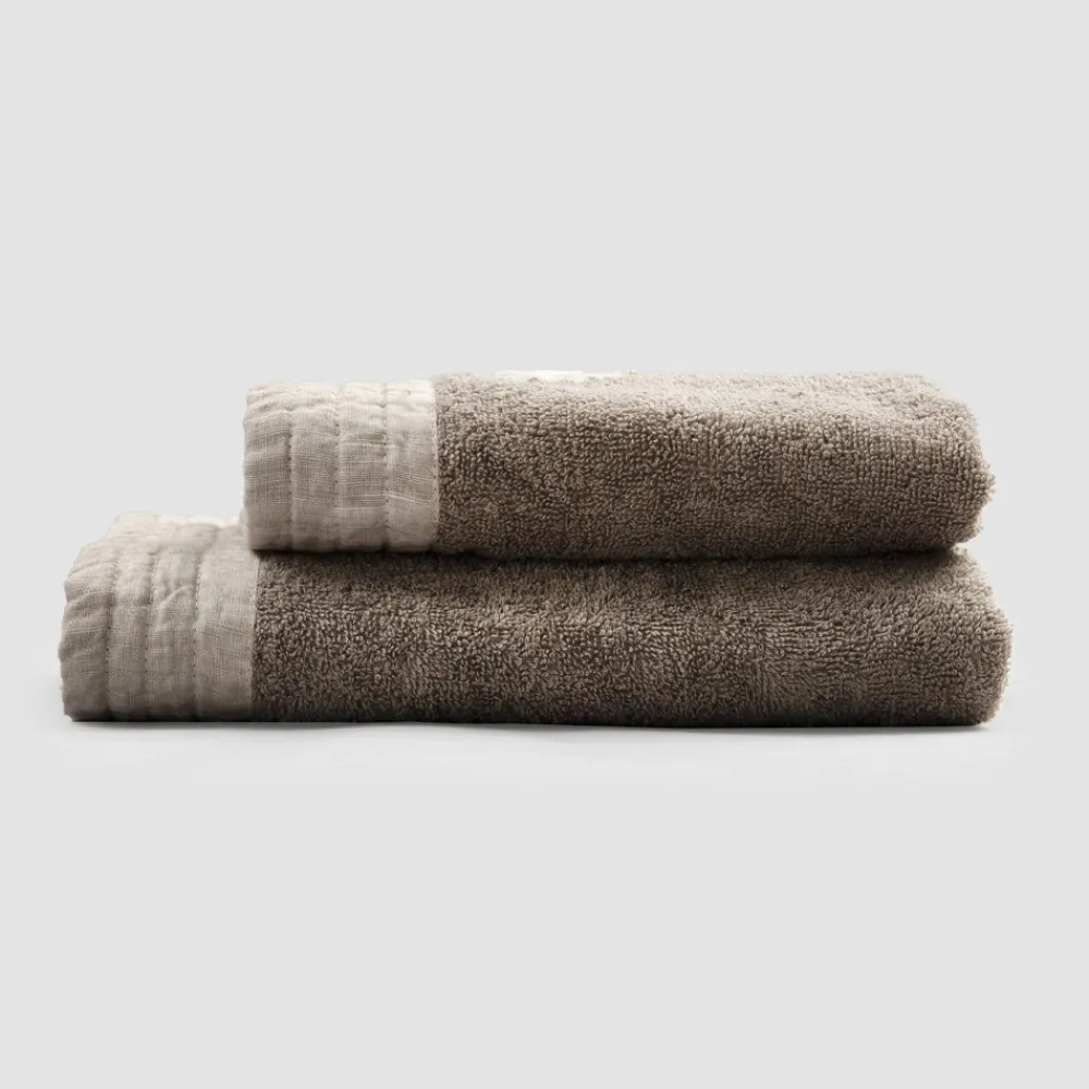 Der Wert der Tradition verbindet den modernen Lebensstil mit Gesicht und Gästetüchern aus Baumwollfrottee mit einem Rand aus Leinenmischung .