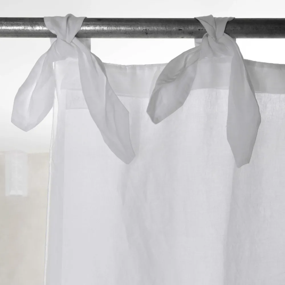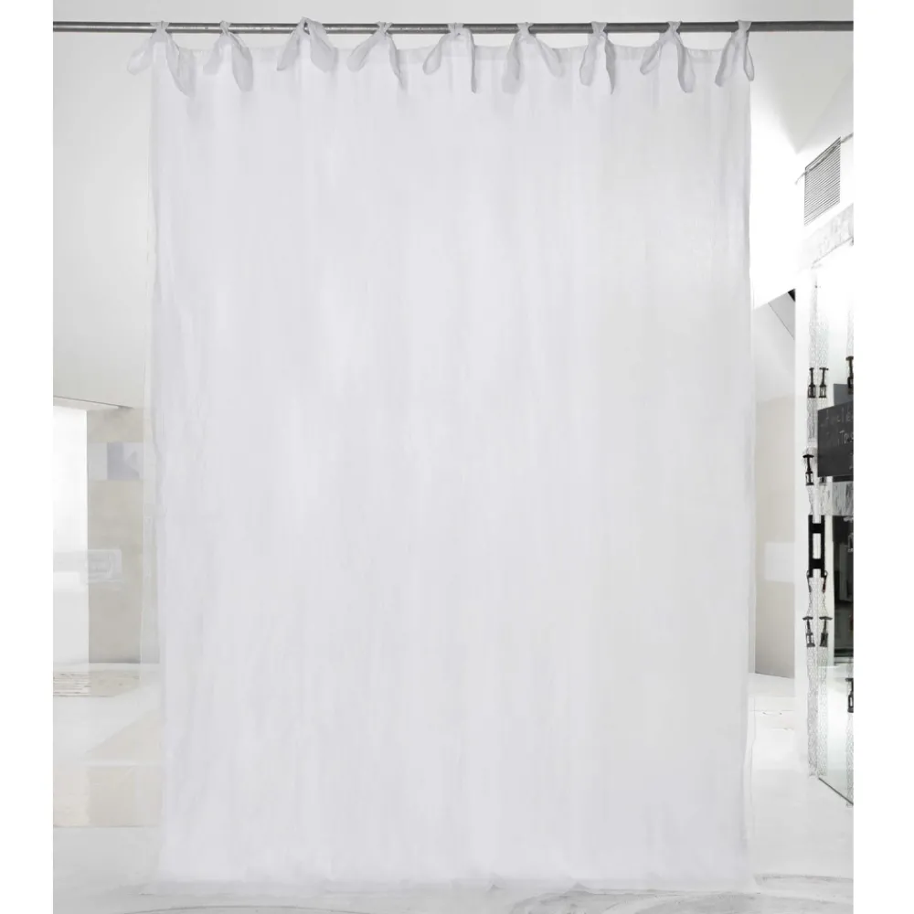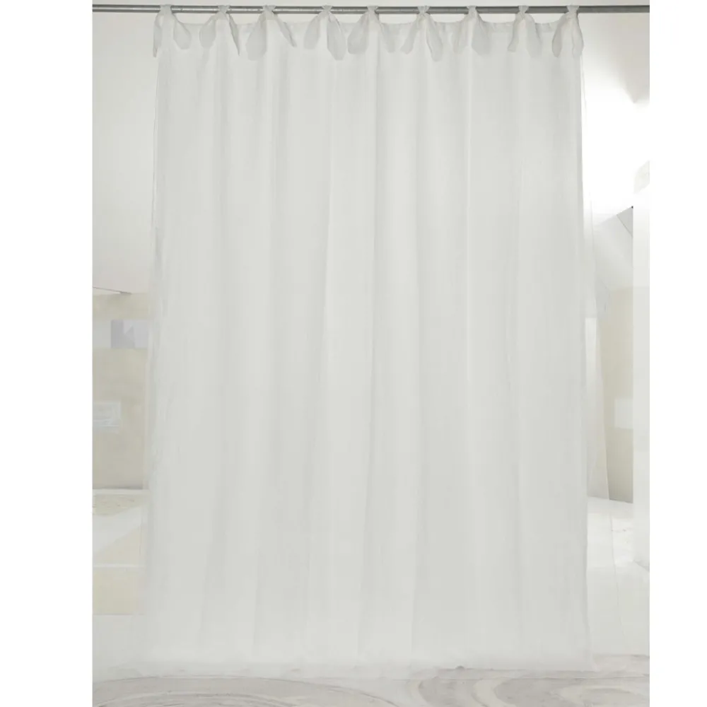 Vorhang aus hellem Leinen und Organza, Schnürung mit handgefertigten Qualitätsschnürsenkeln, Luxus made in Italy.