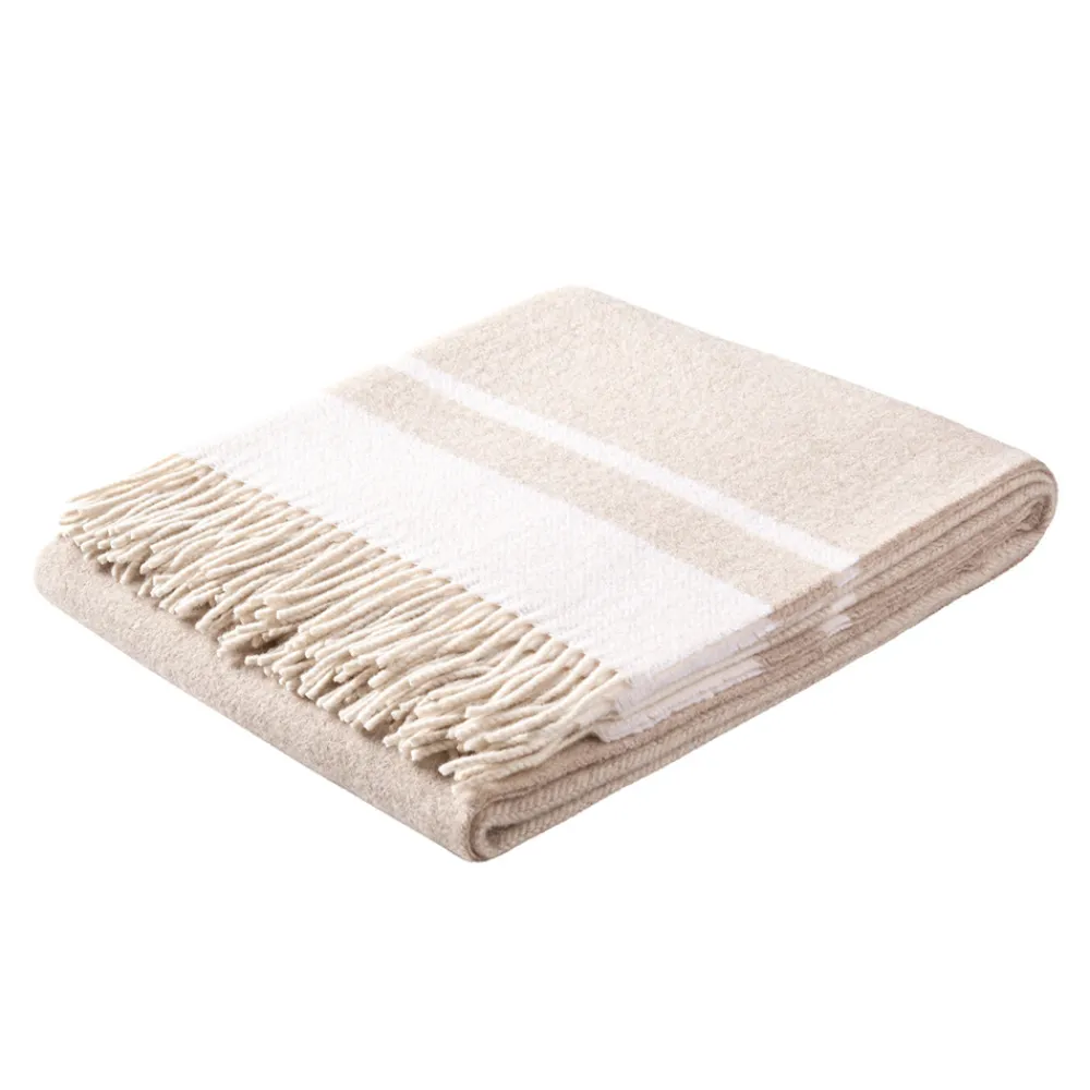 Plaid aus 70 % WL-Wolle und 30 % PA-Polyamid, das ultraweich und flauschig ist, vollständig in Italien gemäß der toskanischen Textilhandwerkstradition hergestellt und verpackt.