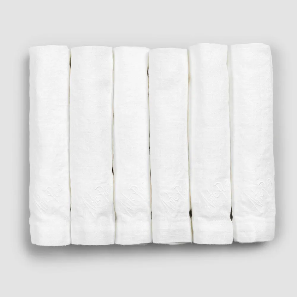 Der Wert der Tradition wird mit dem modernen Lebensstil in diesem Service von 6 schweren weißen Leinenservietten mit Falzkante kombiniert.