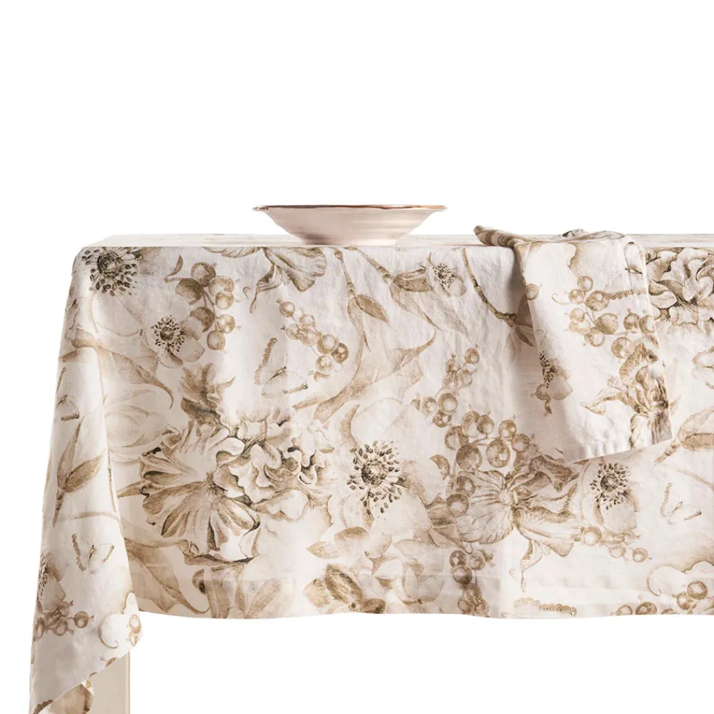 Bedruckte und gewaschene Tischdecke aus reinem Leinen mit üppigem Blumenmuster