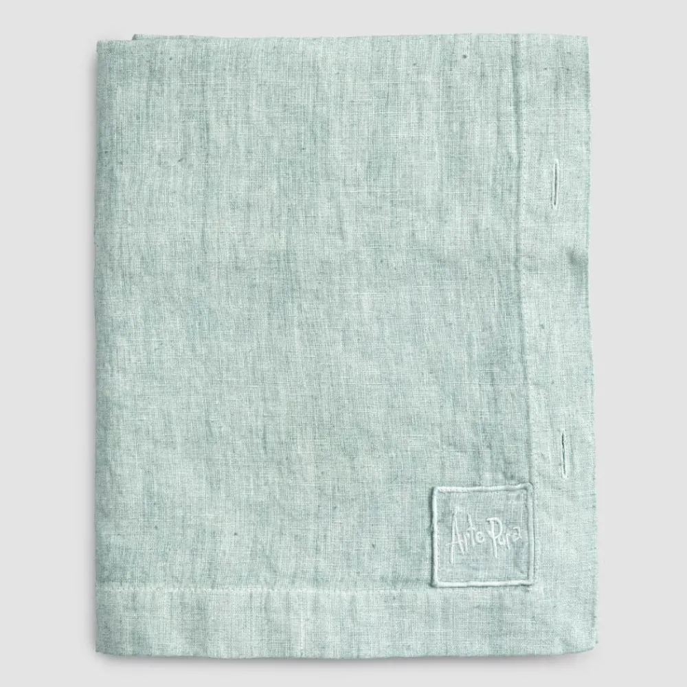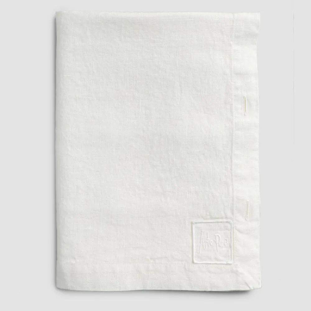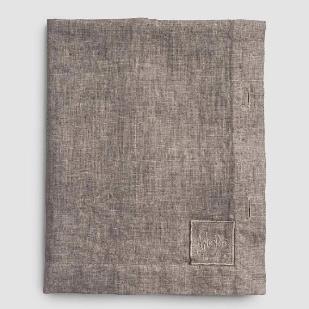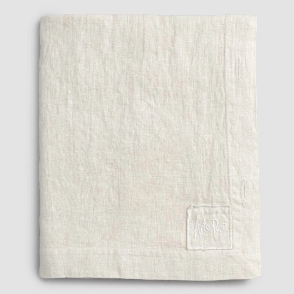 Modulare Leinentischdecke mit Perlmuttknöpfen, handgefertigte Qualität made in Italy.