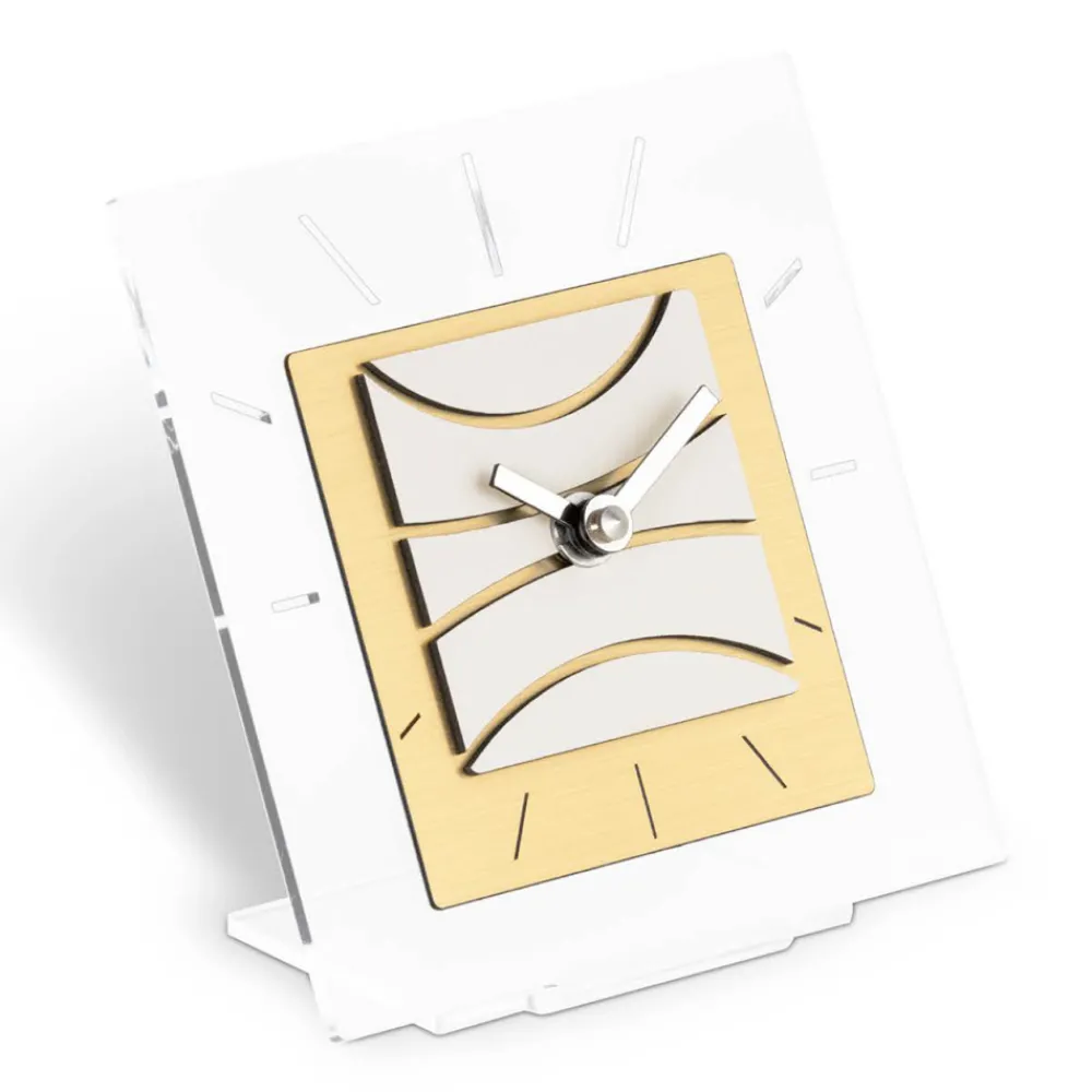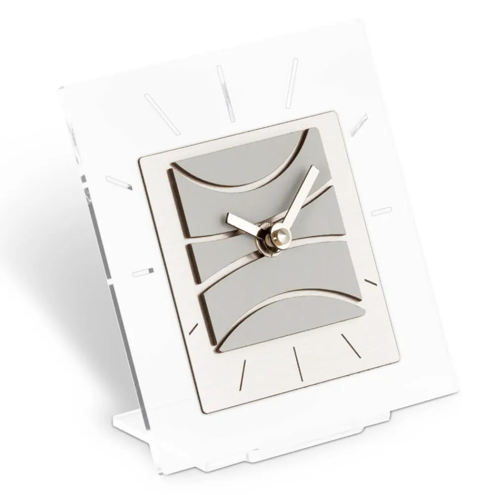 Tischuhr aus transparentem Methacrylat hoher Dichte und Reinheit, hergestellt in Italien