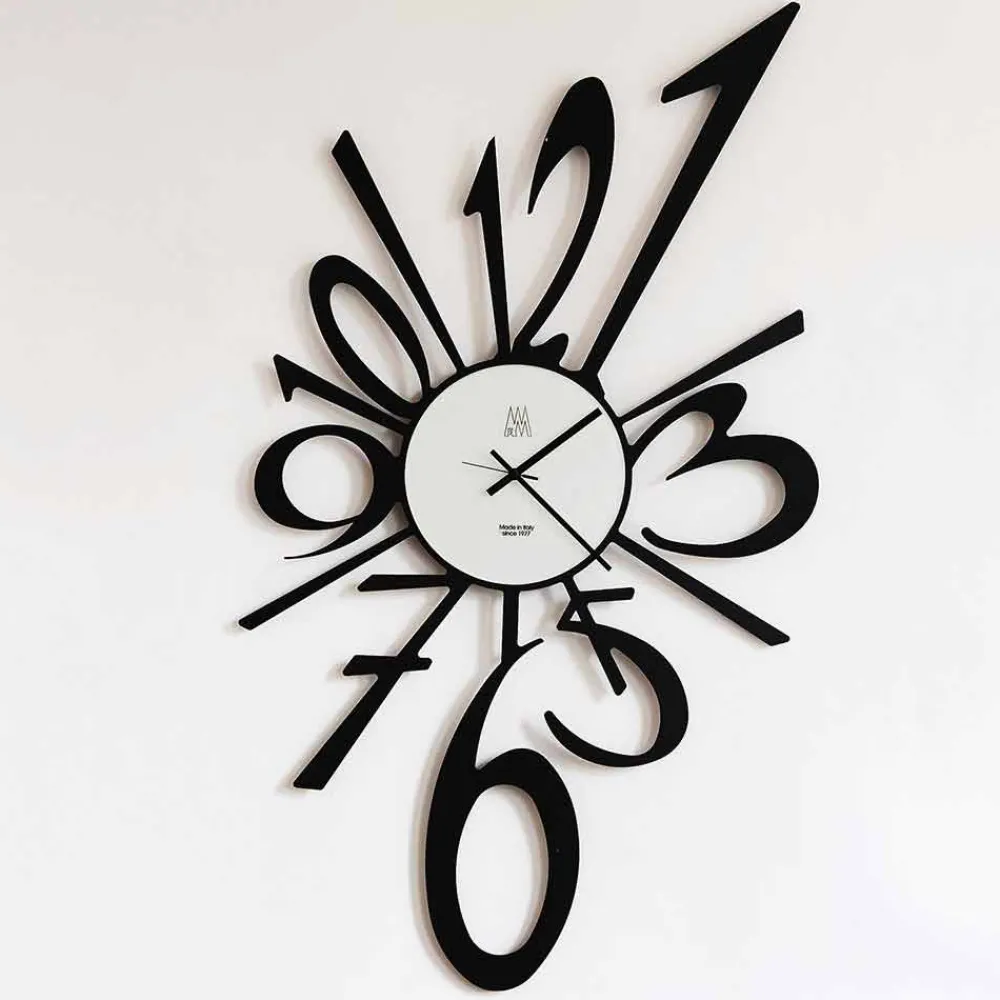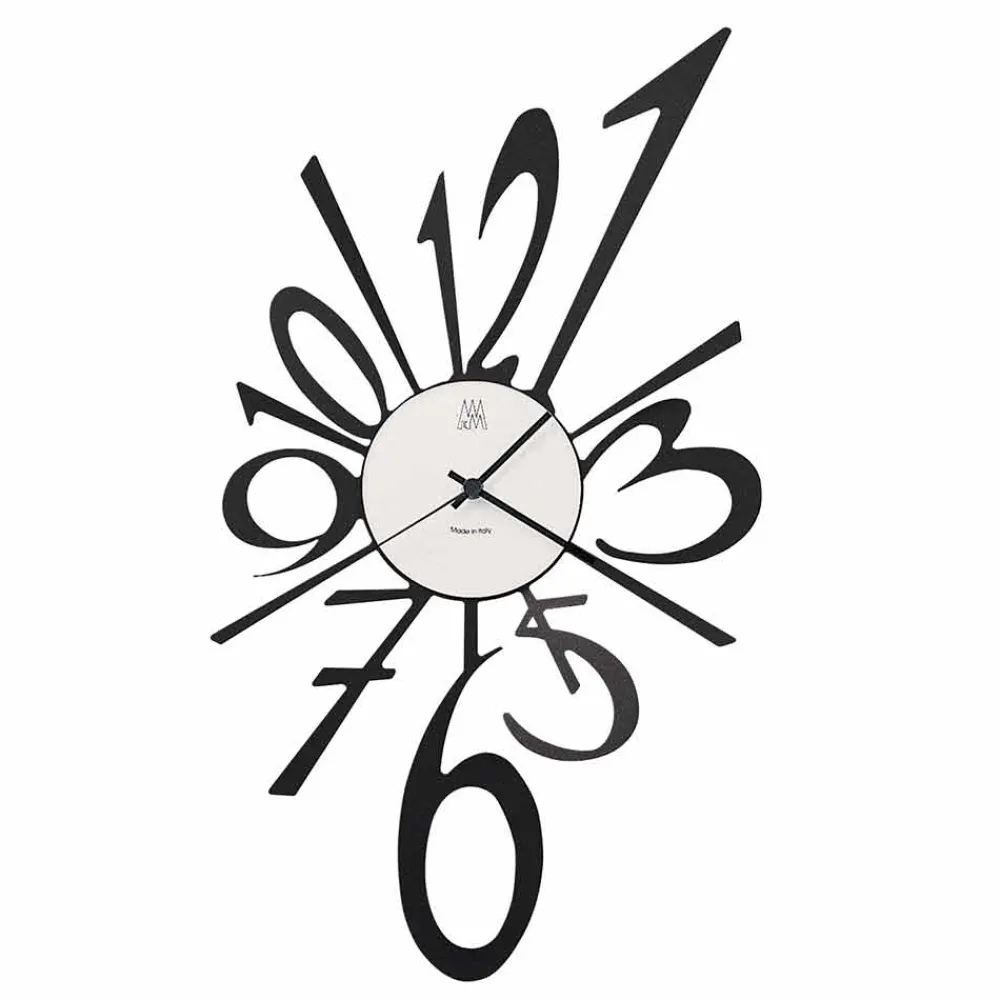 Wanduhr in modernem Stil, handgefertigt in Italien aus Eisen in schwarz lackiert oder aluminium-farbe.