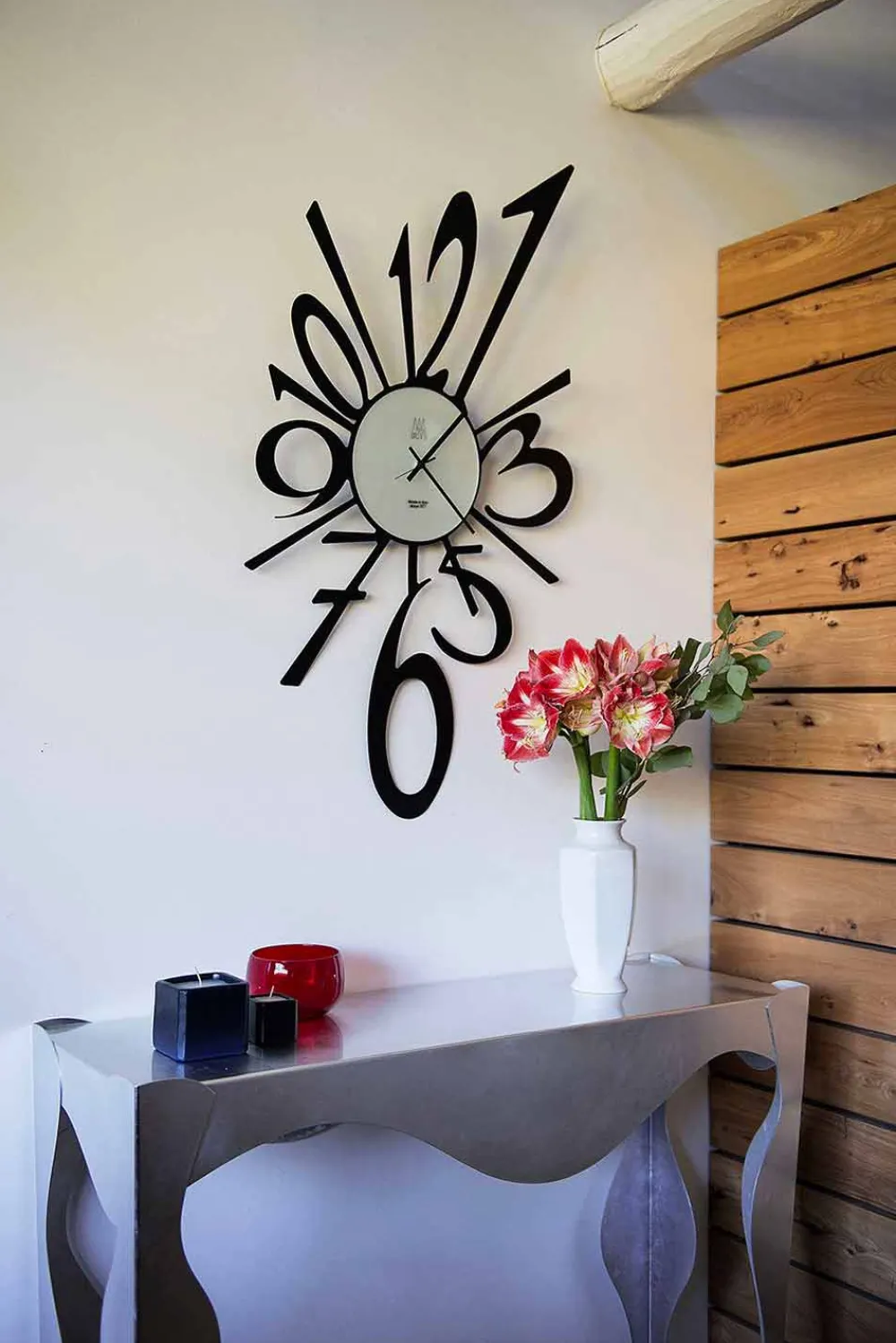 Eine innovative Uhr, die mit jeder Art von Einrichtung in jedem einzelnen Raum harmoniert: Wohn-, Esszimmer und Büro.