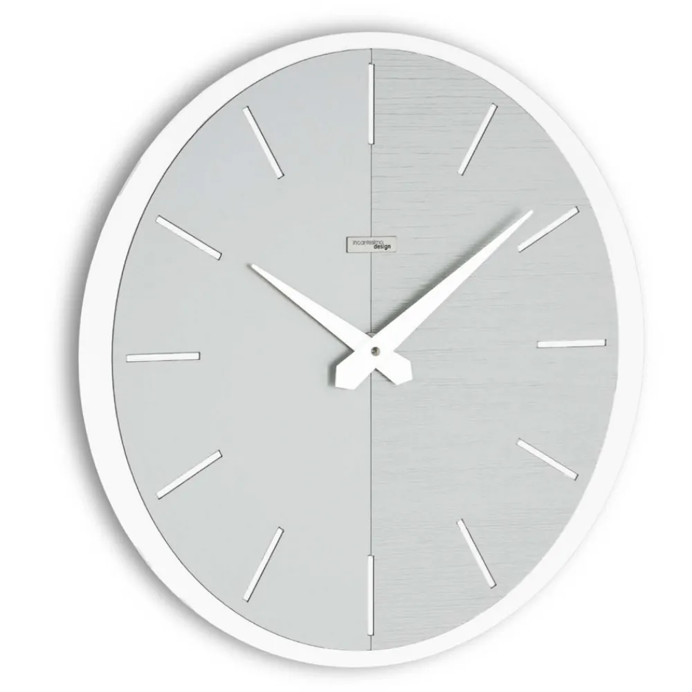 Wanduhr aus hochdichtem halbexpandiertem PVC und Zifferblatt aus geschichtetem Laminat , hergestellt mit High-Tech-Werkzeugen, vollständig in Italien hergestellt.