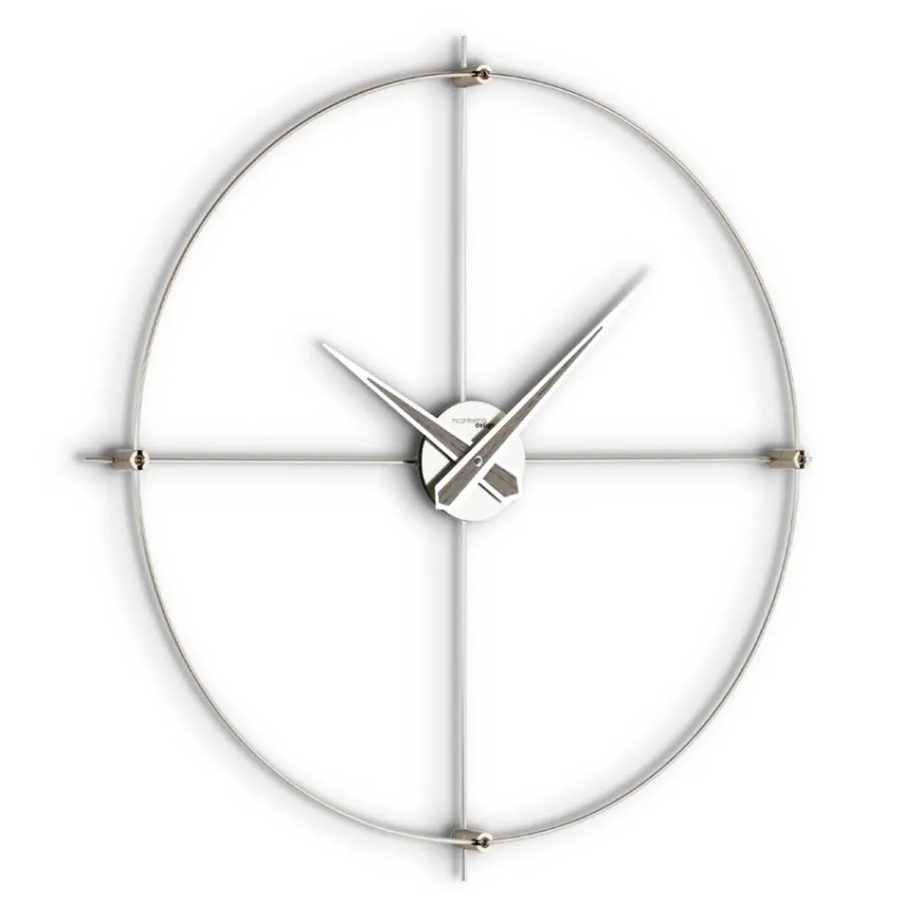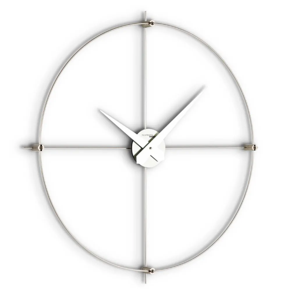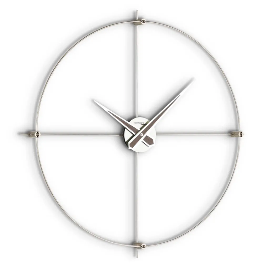 Wanduhr aus einer Stange aus satiniertem Stahl , die von erfahrenen Handwerkern geschnitten, geformt, gebogen und geschweißt wird, vollständig in Italien hergestellt.