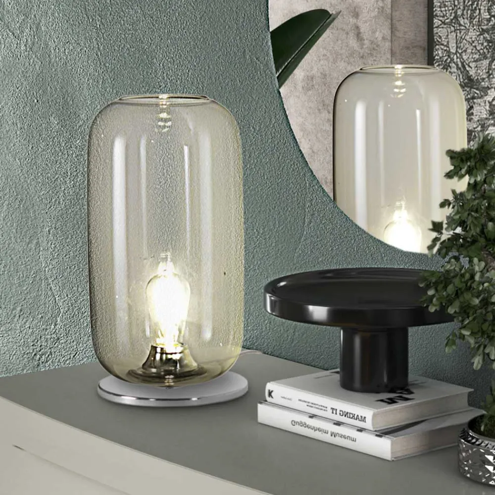 Tischlampe aus mundgeblasenem Glas in den Öfen des venezianischen Hinterlandes, in Italien, nach den alten Traditionen der Muranoglasverarbeitung, die im Laufe der Jahre von erfahrenen Handwerkern weitergegeben wurden.