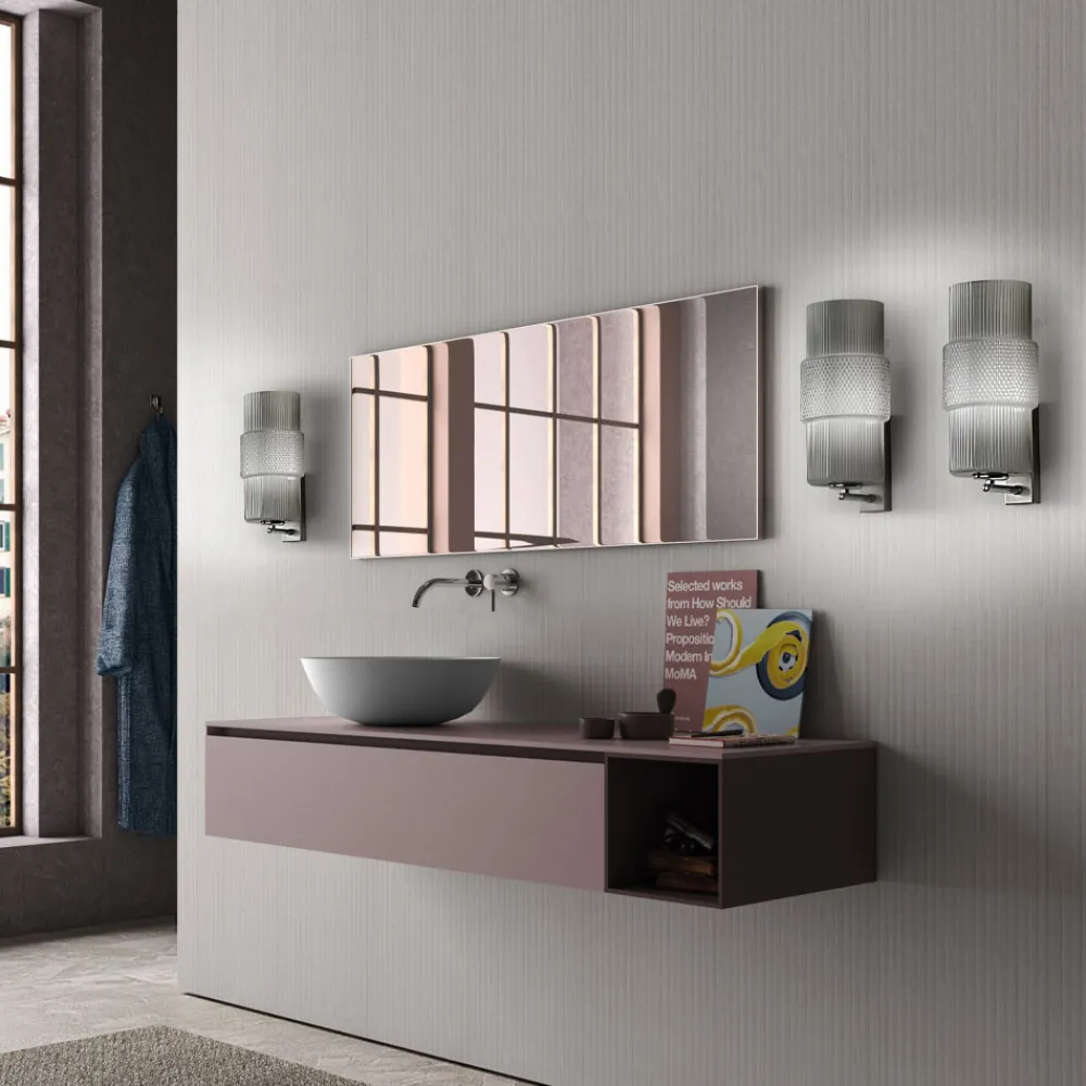 Ein kleines und elegantes Meisterwerk der Kunst aus geschichtetem oder transparentem Glas mit Streifenverarbeitung , das der Umgebung einen Hauch von raffinierter Eleganz verleiht, zusammen mit Lichtspielen mit faszinierender visueller Wirkung.