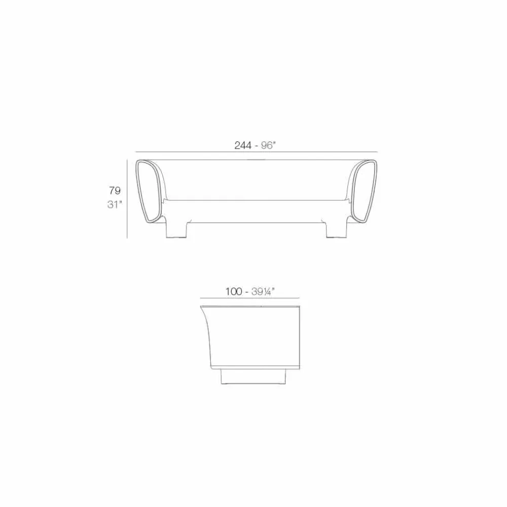 Sofa aus Polyethylenharz mit einer doppelwandigen Rotationsform; schwarz lackiert.