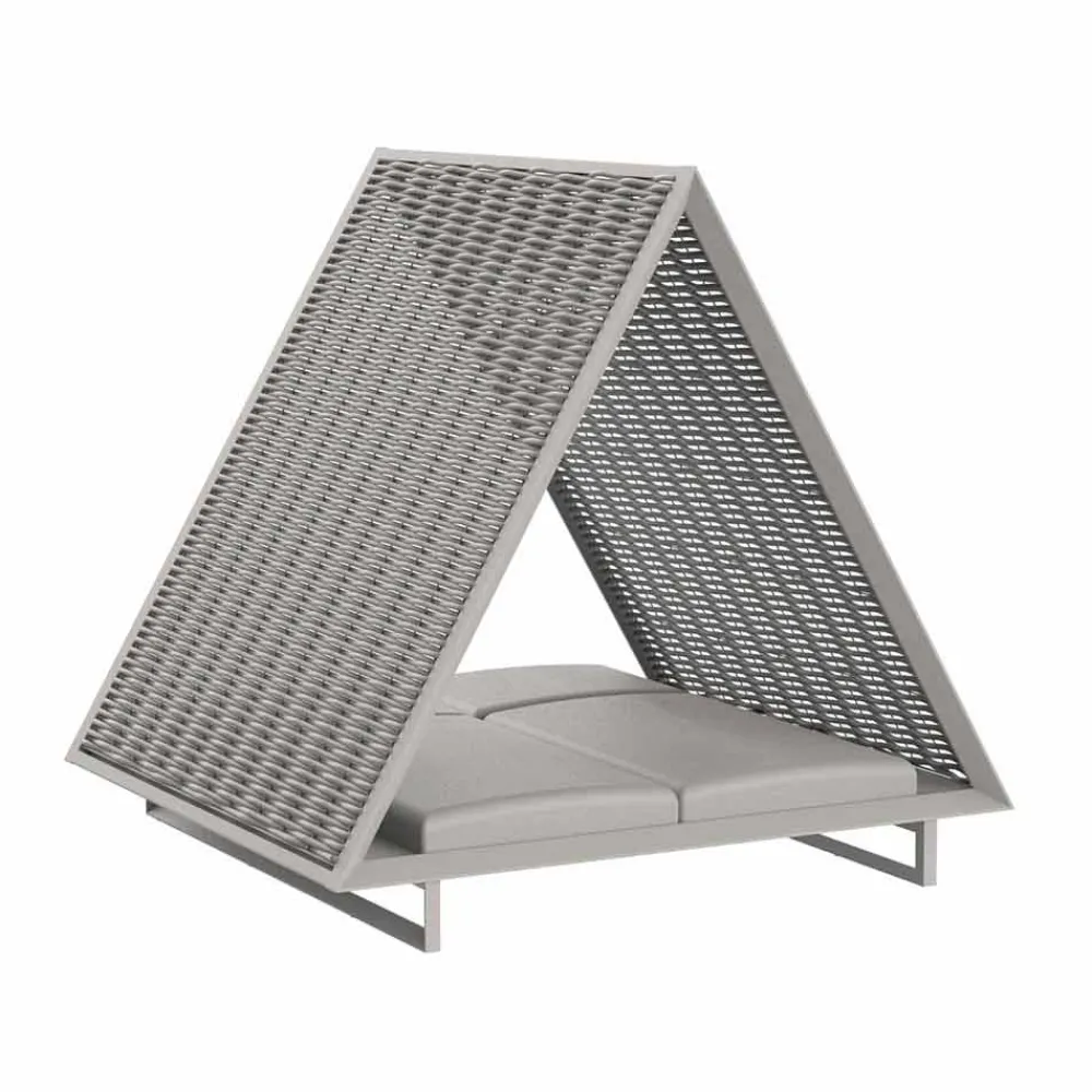 Doppeltes Tagesbett im Freien, luxuriöses und elegantes Design mit Aluminiumstruktur und geflochtenem Seilschirm.