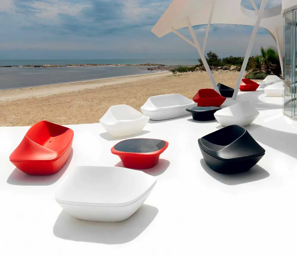 Die Ufo-Sammlung zeichnet sich durch den Gegensatz von negativen und positiven Formen aus. Dieser kreative Ansatz hat eine monolithische, fließende und skulpturale Linie geschaffen. Mit seinen Artikeln können Sie verschiedene Kombinationen erstellen, die sich dank ihrer eleganten und widerstandsfähigen Materialien leicht an Außenbereiche anpassen lassen. Die Farben, die Farbpalette und die Innenbeleuchtung erweitern die Möglichkeiten, unterschiedliche Umgebungen zu schaffen.