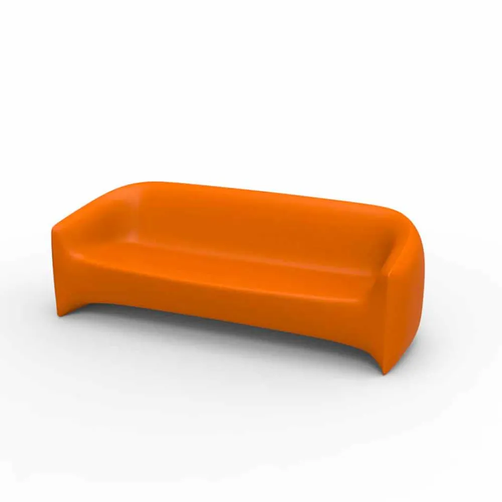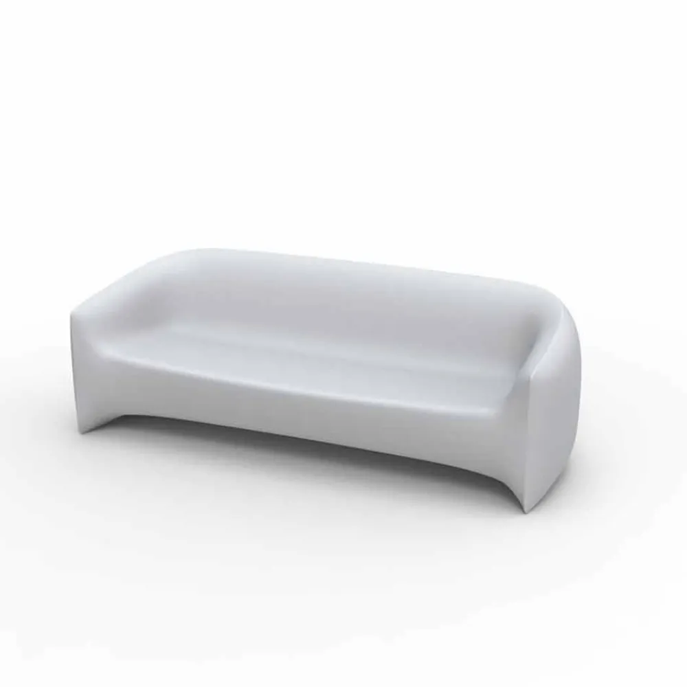 Die Blow-Kollektion wurde vom italienischen Designer Stefano Giovannoni entworfen. Diese Linie basiert auf dem Wunsch, eine neue Produktfamilie zu entwickeln, die mit der Pillow-Familie harmoniert, sich jedoch in ihrer Art unterscheidet. Blow ist aus der Idee des aufgeblasenen Kissens entstanden und bietet die traditionellere Art von Sesseln und Sofas mit Armlehnen. Sein Komfort und sein Materialcharakter ermöglichen den Einsatz sowohl im Innen- als auch im Außenbereich. Das Gartensofa eignet sich perfekt zur Dekoration von Außenbereichen. Hergestellt mit weichen und geschwungenen Linien, besteht es aus Polyethylen, einem Material, das schlag- und klimaunempfindlich ist.