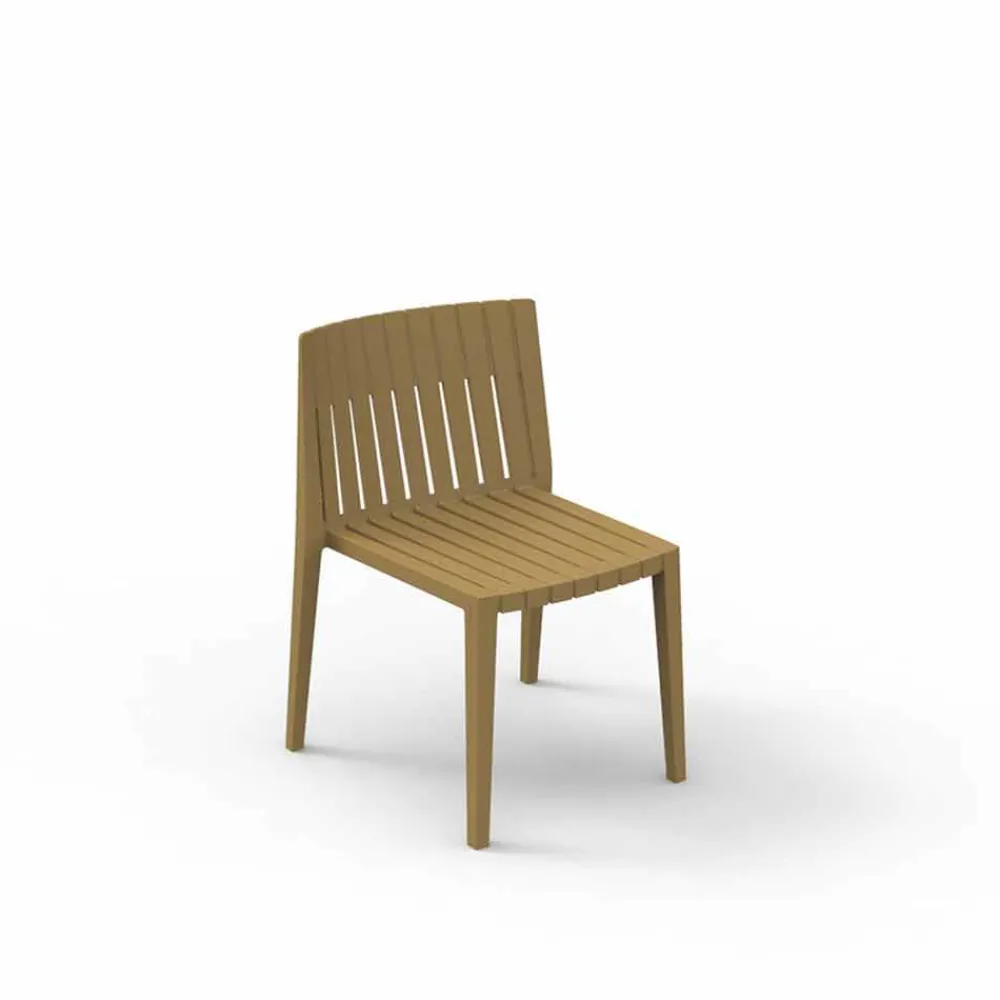 Der Outdoor-Stuhl ohne Armlehnen mit definierten Linien besteht aus Polypropylen und Glasfaser. Diese Materialien sind schlagzäh und UV-stabilisierend.