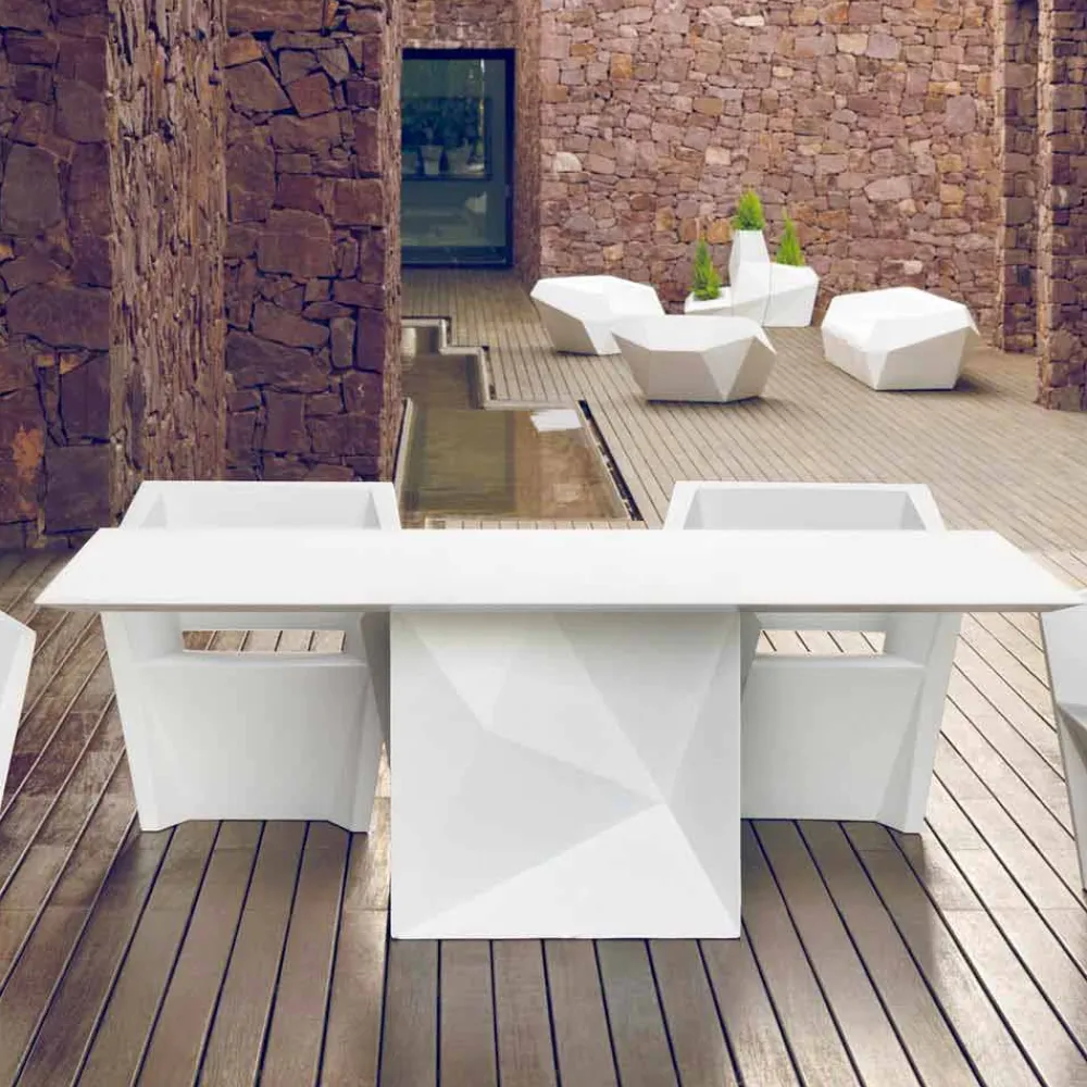 Faz by Vondom weiß lackierter Gartentisch , hergestellt aus Polyethylenharz durch eine doppelwandige Rotationsform. 100% recycelbar.