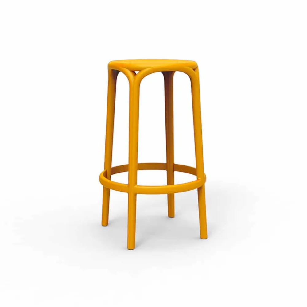 Der Brooklyn Outdoor Hocker basiert gleichzeitig auf geraden und geschwungenen Linien. Das Material besteht aus Polypropylen mit Glasfasern. Das Objekt ist pflegeleicht und stoßfest.